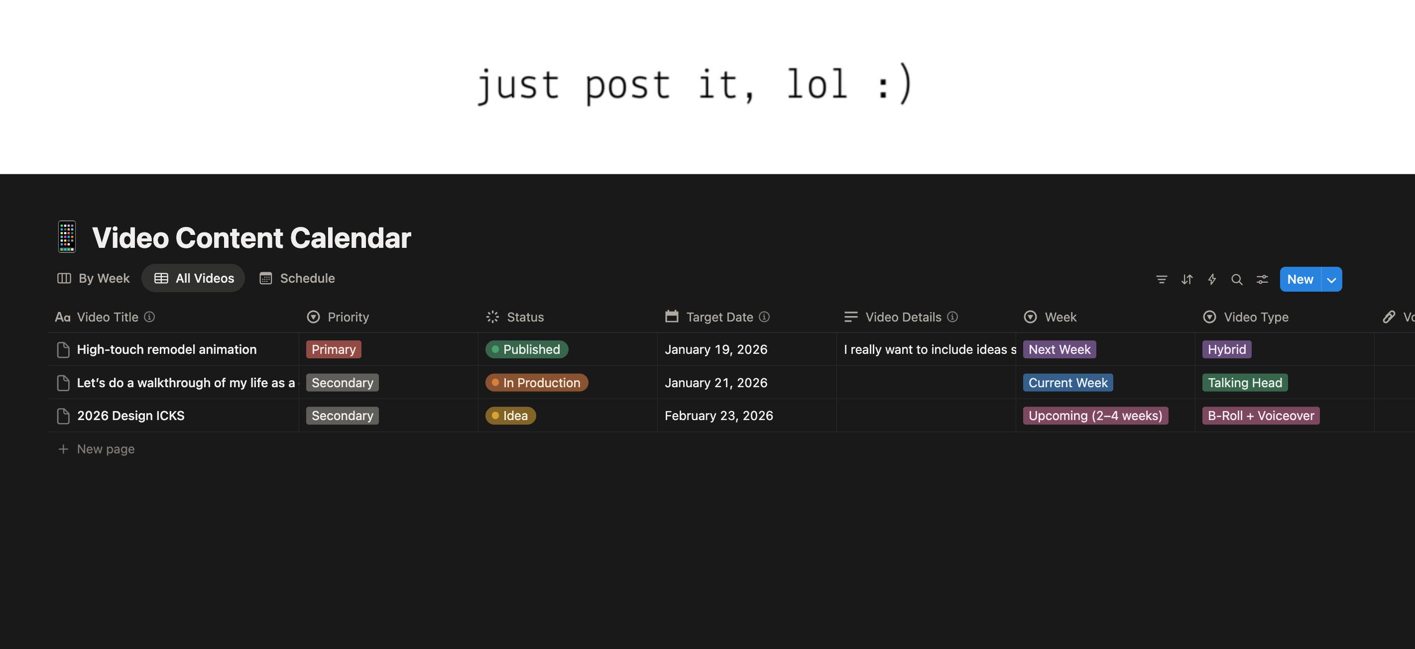 You get a clear list of concepts, prompts, or talking points so you’re not guessing what to film. Record on your phone, Zoom, podcast, or wherever feels natural, then upload your footage.